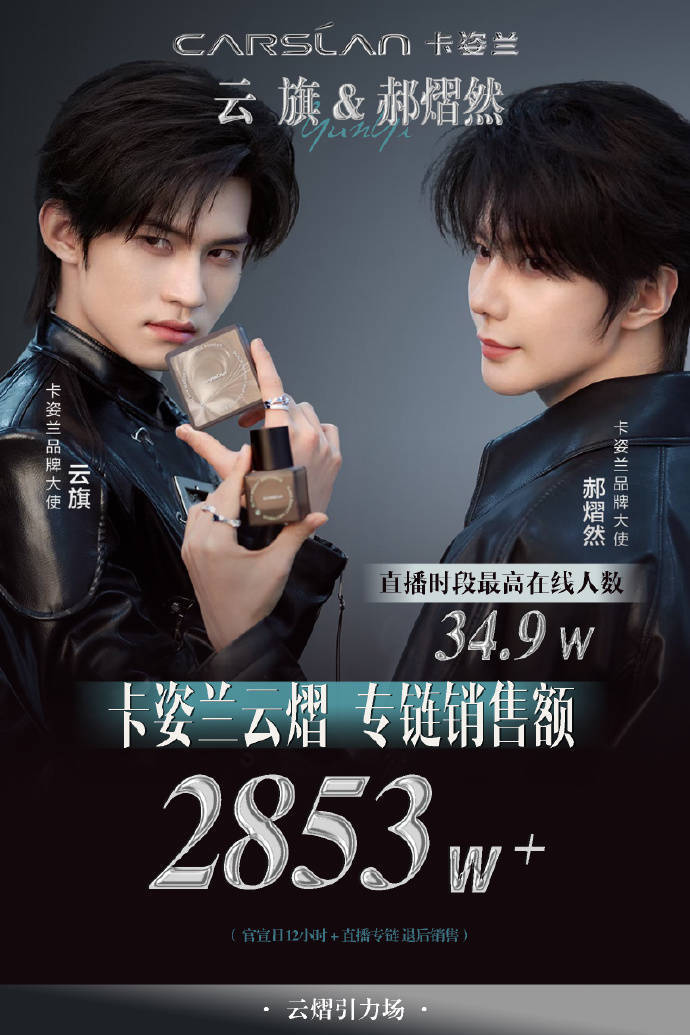 不过话说回来,这对CP的带货神话能持续多久?目前看来势头正猛——美康粉黛刚把郝熠然从大使升为代言人,云旗也拿下花间颂全万的销售额。但圈内人都知道,CP经济就像过山车,前有某对顶流CP因粉丝互撕导致代言解约,后有品牌方悄悄押注单人商务。卡姿兰这次能成功,关键在于找到了「CP共生」的平衡点:既让粉丝磕到糖,又不消费过度。就像云旗在采访里说的:「我们不是在卖CP,是在卖认真营业的态度。」或许这才是真正的财富密码吧?毕竟现在的粉丝可不傻,能让他们心甘情愿掏钱的,从来都不只是脸。